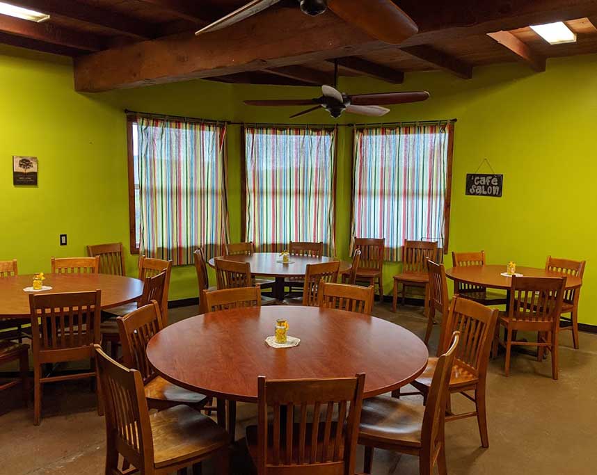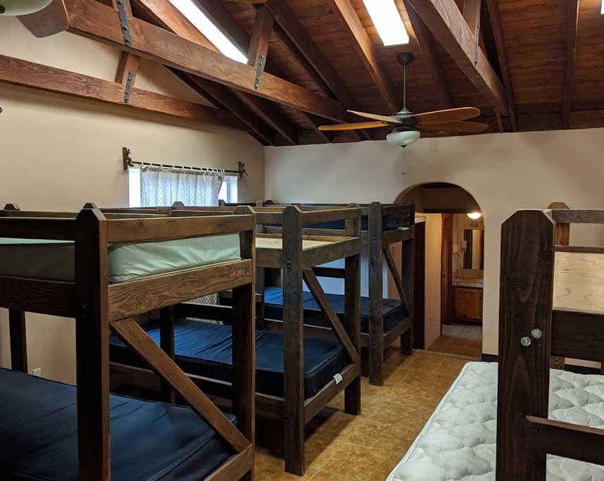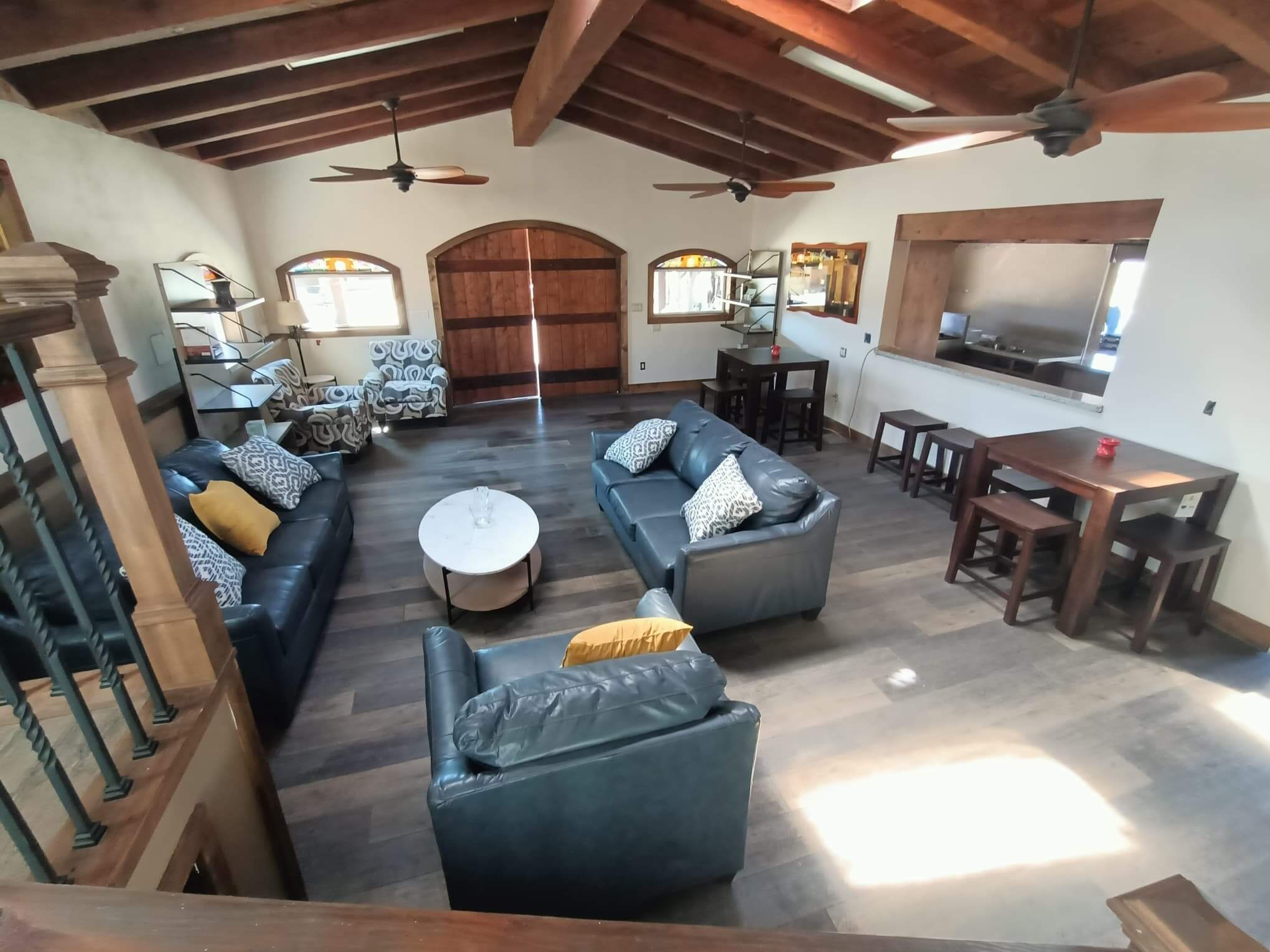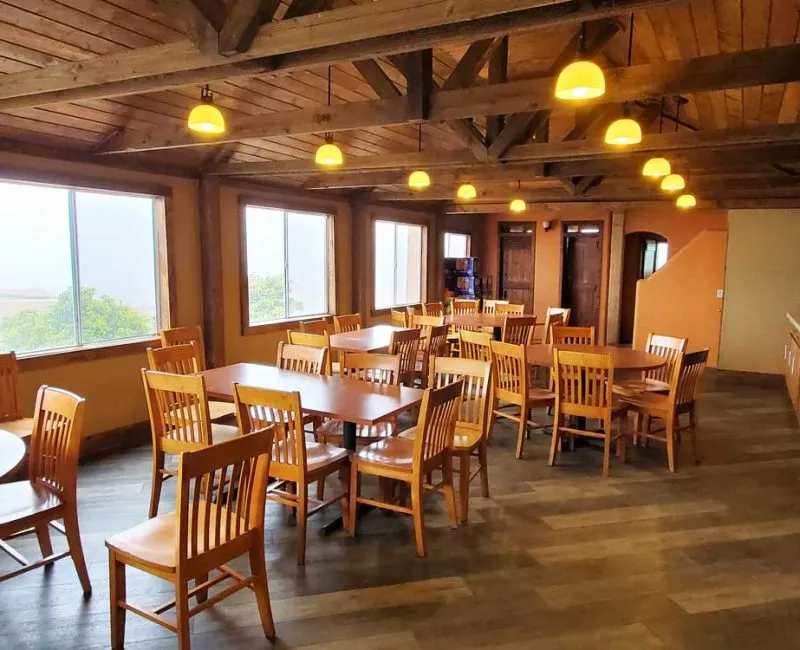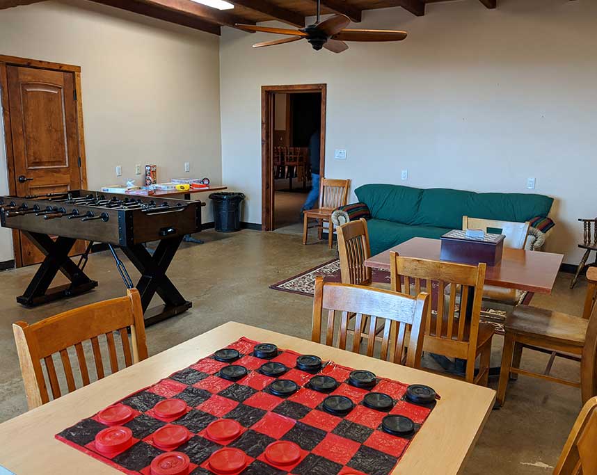 This is the main indoor gathering place at The Ranch which can hold up to 800+ people and is used for numerous activities including dining, indoor chapels, conferences, special events, weddings, basketball, etc. It has a fully operational stage with sound and lighting. A commercial kitchen is also attached to provide for team meals, conference meals and special banquets.